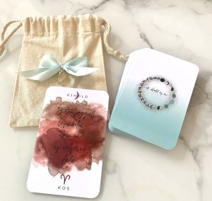 Ahogy a kártyák, a csomagolás is egyedileg készült. A pakli vászon tartóban érkezik majd hozzád, amit egy holdkő díszít.